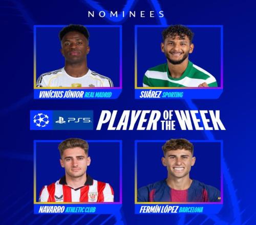 本轮欧冠最佳球员候选:维尼修斯、苏亚雷斯、纳瓦罗、费尔明